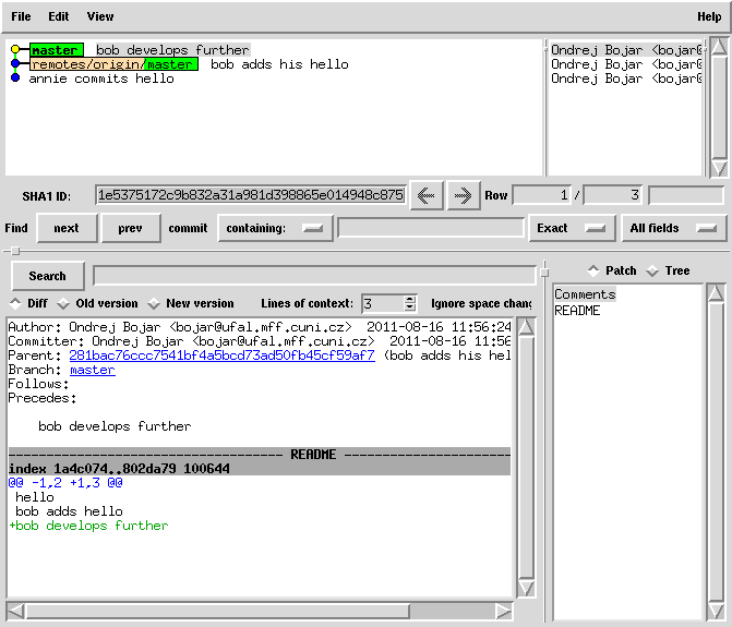 echo 'bob develops further' >> README git commit -a -m 'bob develops further'
